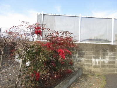まだ冬の空と冬の名残りの南天も・・・
