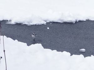 それに、雪かきしたばかりの道にとても人懐っこいハクセキレイ。すぐ近くまで来てくれる。